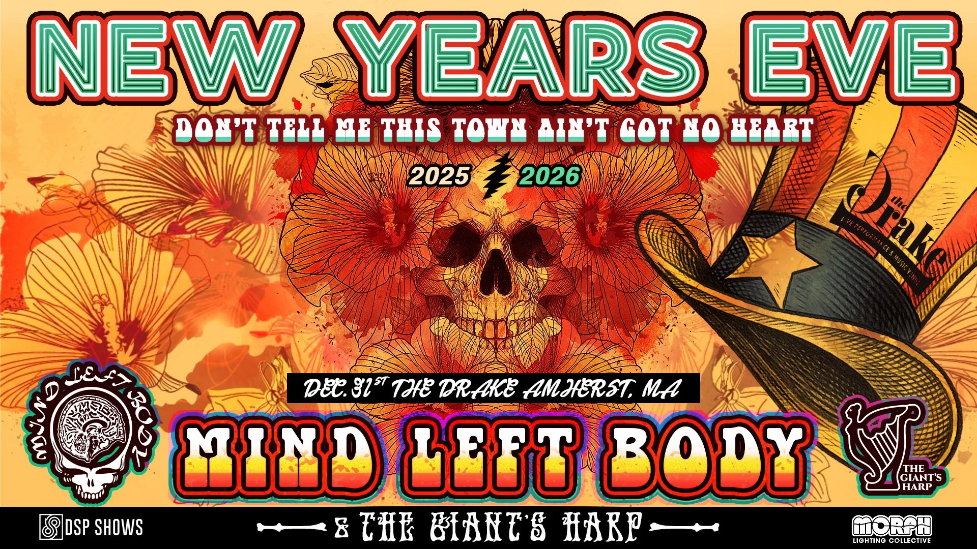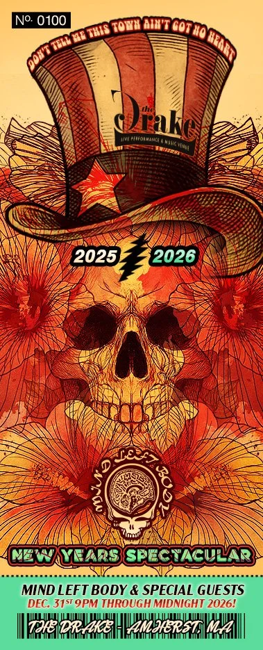 The Drake will host local psychedelic rockers Mind Left Body and their mind-bending, live lighting and visualization partner Morph Lighting Collective as part of a special first night event in the heart of downtown Amherst celebrating the best of famous Grateful Dead New Years shows through the years. This one-night-only special event will honor historical NYE Grateful Dead shows through the 70s and 80s, including the legendary Closing of Winterland show in 1978. The event takes place on Wednesday, December 31, 2025 at 9pm (doors at 8pm) at The Drake at 44 North Pleasant Street, Amherst, MA.